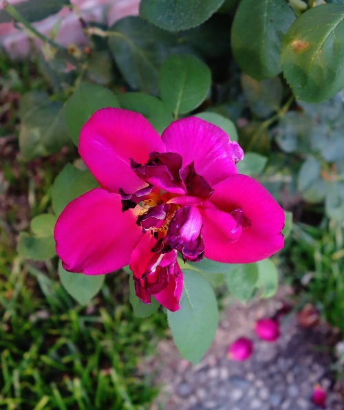 One thing I have noticed about my Mr. Lincoln rose is that there is a very short life cycle for a bloom. See: The Life of a Rose Bloom