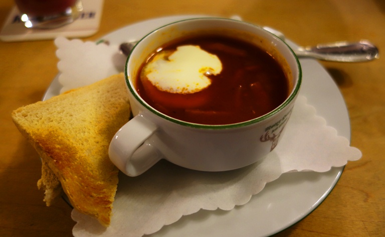 For dinner I started with a nice cup of Soljanka. This soup is from Russia and is sour and spicy. This is a very popular soup in eastern Germany especially in areas where Russian troops were stationed.