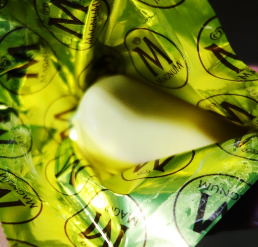 White Chocolate Magnum, Strawberry Magnum, Ice Cream BarsAs I headed back outside I opened up the package so I could enjoy the velvety goodness of the ice cream bar. The bar was covered with white chocolate and I was anticipating biting into it to see the strawberry filling.