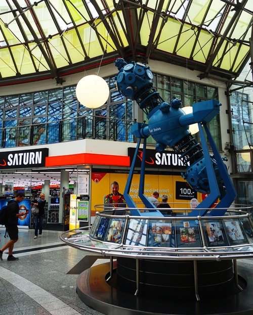 On the way to the restaurant I stopped by the Goethe Galerie shopping center. They have an old Zeiss planetarium projector on display. Since my last time in Jena they have opened a large electronics store called Saturn and it is interesting to see the projector in front of the Saturn signs.
