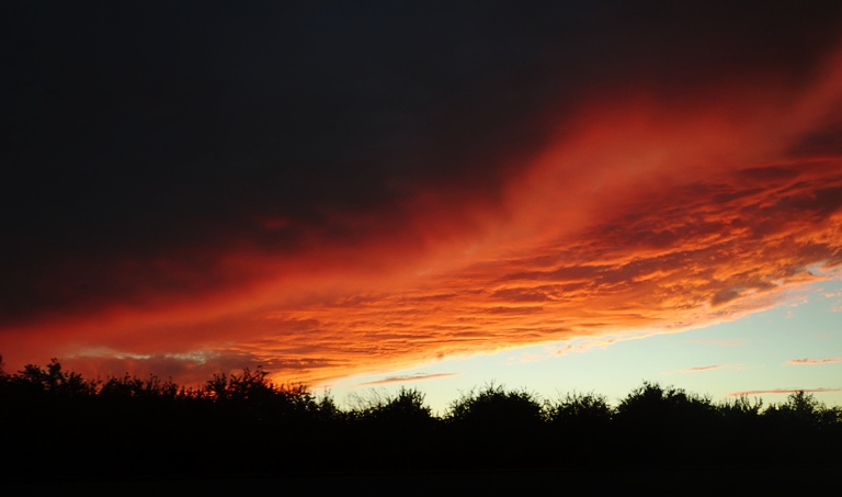 You could see that it was very dark where there was cloud cover. The red slowly receded from the clouds as the sun dropped further below the hills to the west. As I got closer to home it got very dark as the clouds did not clear.