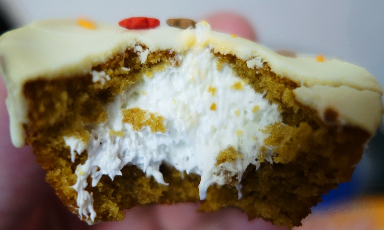 The cakes had a really nice pumpkin spice taste and were delicious. I really enjoyed the nice creamy filling. A little bit like an inside out pumpkin pie.