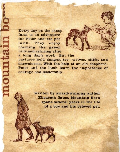 I really enjoyed reading this story about Peter and his pet lamb. The book is set in the Rocky Mountains. The story spans multiple years as Peter grows up while learning how to be a shepherd and interacting with the lamb that he helped save.