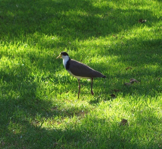 I will usually see some black-shouldered lapwings (Vanellus novaehollandiae) as I walk to work. There is a pair that is nesting near the sidewalk about half way up the hill. This morning I took a break to take a few pictures.