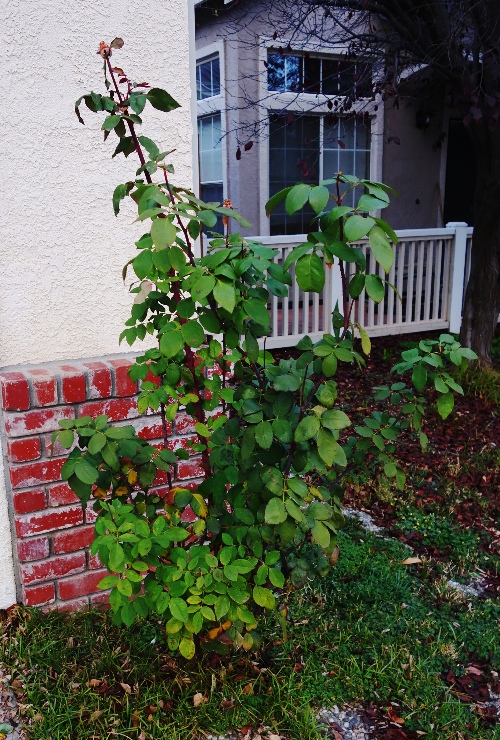 Here is my Mr. Lincoln rose bush which I planted earlier this year. You can see that it had a lot of growth this year. See Mister Lincoln Rose II for what it looked like when I planted it earlier this year.