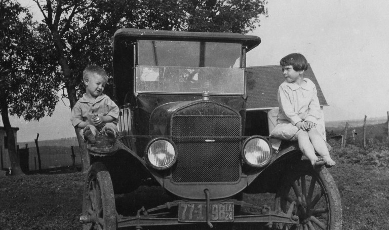 This is one of my favorite pictures as my Grandma is sitting on the fender of the car. You can also see the old Iowa license plate and the crank handle. The license plate has a 24 on it which I believe is for 1924 since my grandma was four years old for most of 1924.