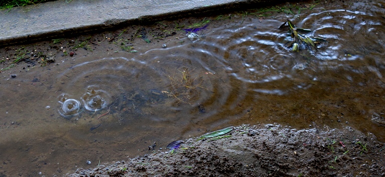I did catch a few ripples and there is some nice interference between the middle two drip areas. On the left there are a couple big splashes that were caught in action.