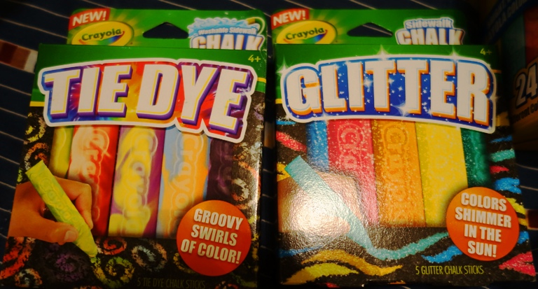 I found these Tie Dye and Glitter sidewalk chalk sticks and just had to add them to my shopping cart.