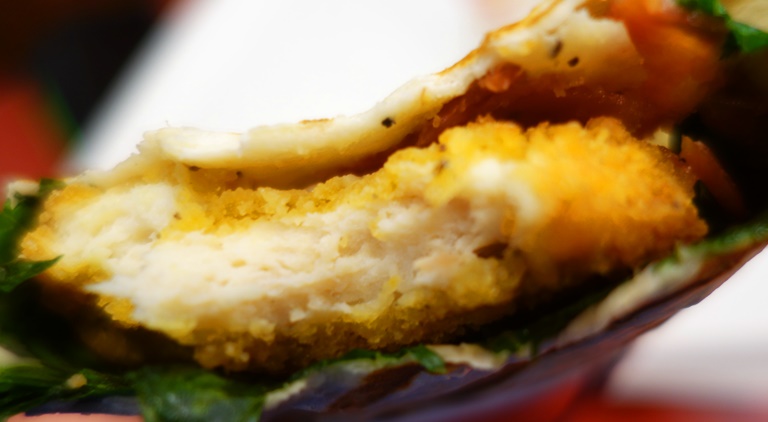 You can see the chicken in this shot down the sleeve. The sleeve has a tear strip that opens it up and then you have a holder for the wrap so that your hand stays clean.