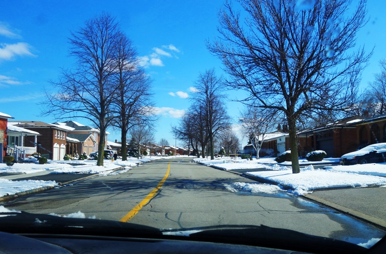 As is often the case you get a nice sunny day after a snow storm. Here you can see that the snow has pretty much melted off the street. I took this picture while we were on the way to the airport for my flight.