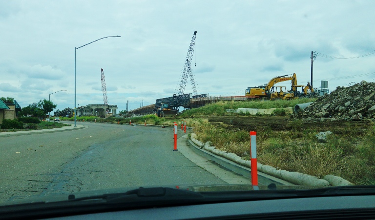 Here you can see some of the old bridge structure. It is definitely a demolition zone at this time. I have been watching the old bridge slowly come down over the last couple of weeks. Soon it will be fully demolished and the new construction will start.