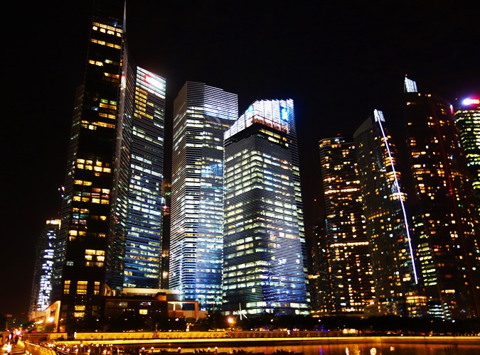 Here is the view looking back toward my hotel. The Marina Mandarin is barely visible on the left side of the picture. It is not lit up as brightly or as tall as the other hotels.