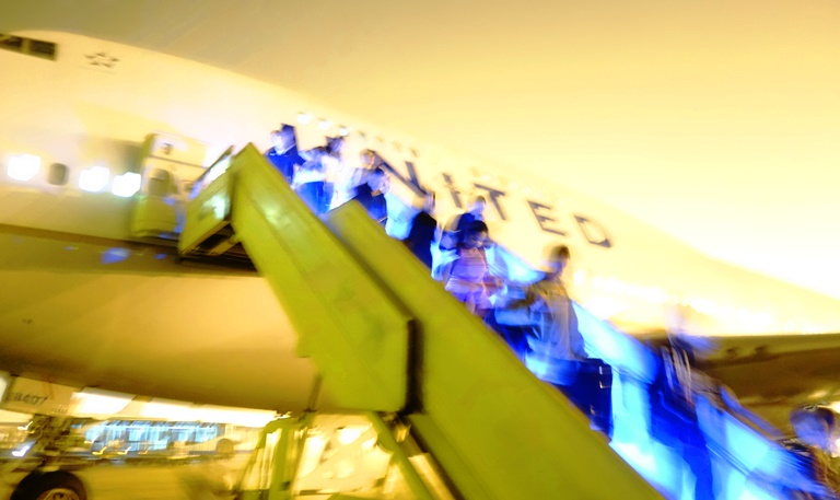 I tried to get a few pictures, but did not pay much attention to camera settings as I was walking and taking pictures at the same time. However, this picture does capture the atmosphere of the tired passengers deplaning on a foggy morning.