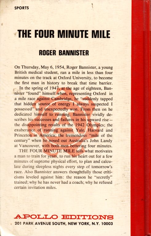 The Four Minute Mile by Roger Bannister was written in 1955.