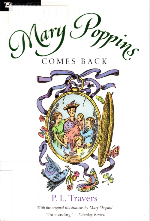 At the end of the first book Mary Poppins floated away with her umbrella. In this book she returns on the end of a kite string.
