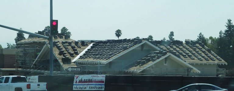 On Thursday I went to In-N-Out for lunch. This allowed me to get a few more pictures of the Pleasanton Chick-fil-A under construction. I took this picture while stopped at a red light. You can see that the shingles are still just sitting on the roof.