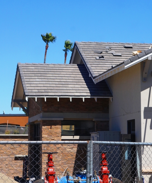 My first view of the Chick-fil-A building was while stopped at the signal at 580. I immediately saw that finally the roofing was almost complete. For several months now the shingles have been sitting in stacks on the roof.