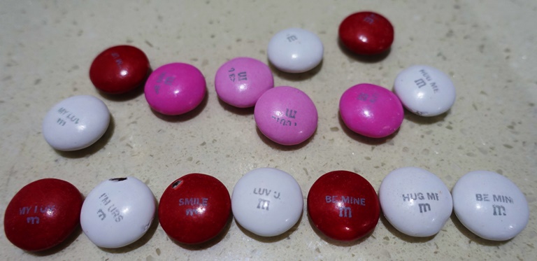Before I left on my trip to Australia I picked up some packages of M&M’s at the store. They definitely had a Valentine’s Day theme.