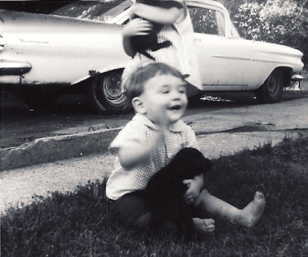 Here I am holding a little black puppy when I was about a year old. At that time we lived on the north side of Ottumwa, Iowa on Lincoln Street.