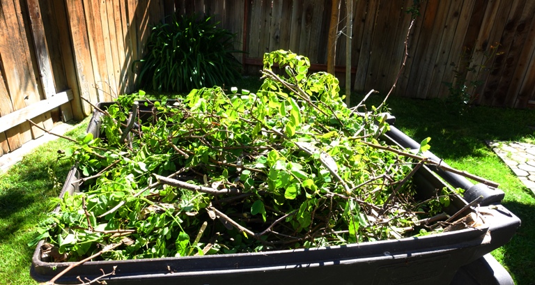 I was able to get all the trimmings into the yard waste container. Now to determine if this is the week they pick up yard waste. If so, I may need to do some more work next week.