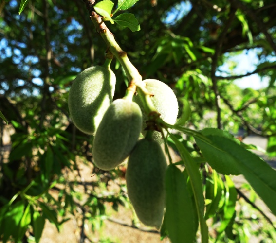 Here are some almonds, it was not long ago that this tree was white with blossoms.