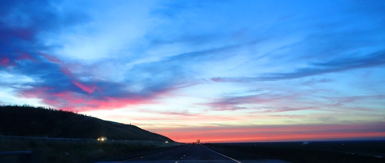 As I get out on the interstate, I have a great view ahead of me. Some high clouds, but also a solid band of red sky ahead of me to the north.