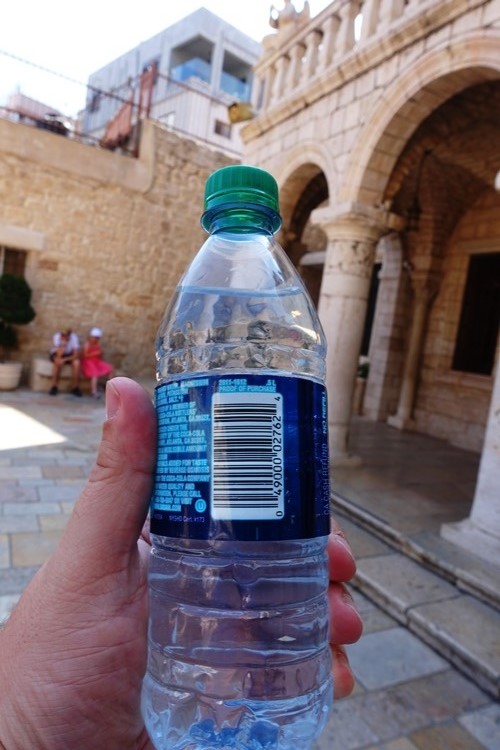 We made a stop along the way to visit a church. I will give you a clue as to where it was. Above you see me holding a bottle of water.