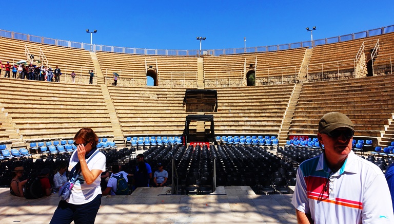 We were up on the stage at the request of our guide as she wanted to hear us sing again. We decided to sing the first verse of Our God, He is Alive. I believe that this was a good choice, especially if this was indeed where Herod was struck down.