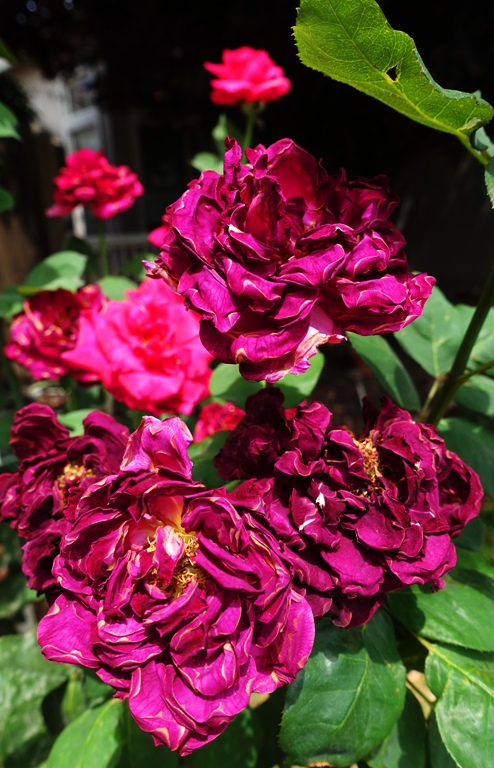 My poor roses bushes had dried out blooms on them due to the extreme heat. However, they still have a special beauty. These are on my Mr. Lincoln rose bush. I did trim back all the spent blooms and there are already some new buds starting to open.