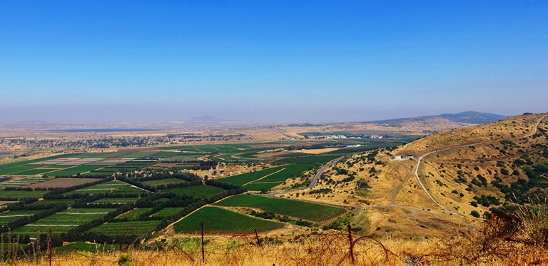 Here is an example. See all the green fields? These are on the Israel side of the border. Just beyond the fields is Syria.
