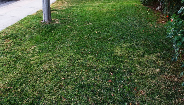 The back yard looks better also and at least most of the grass is green. I also distributed a bit of grass seed to see if I can fill in some of the gaps.