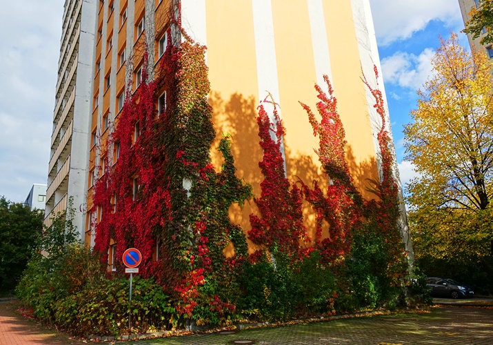 How do you make an apartment block beautiful? You let ivy climb up the walls. It is especially beautiful with the fall color of the leaves.