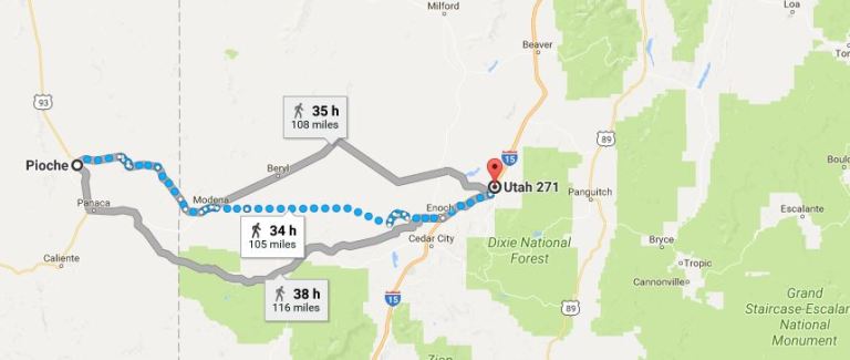 After my walk tonight I have covered about 105 miles since Pioche. This puts me at Parowan, Utah. I still have a little more than 80 miles to Escalante.