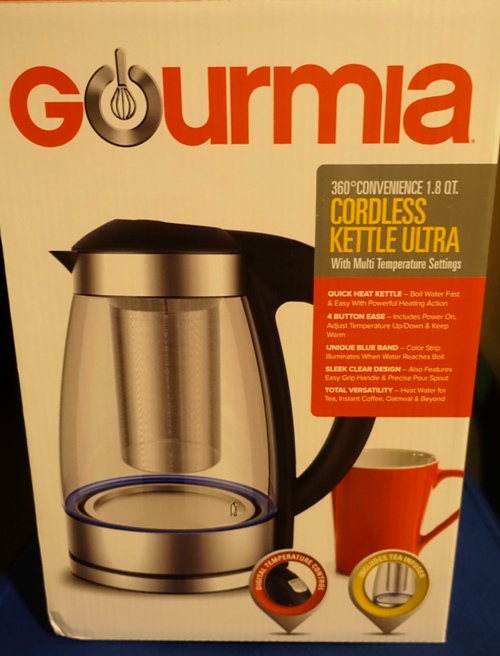 The tea kettle is by Gormia and is programmable so that I can select the right temperature I need for different types of tea. Of course it could also be used for other things like soup or hot chocolate. Basically, anything that needs hot water.