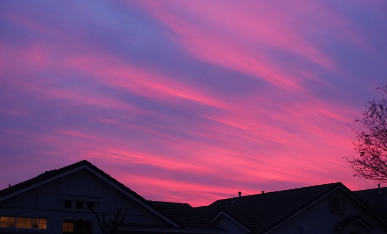 I like the silhouettes of the rooftops and tree in this picture. The color of the sunset is so vibrant. It didn’t last long, but was beautiful while it lasted.