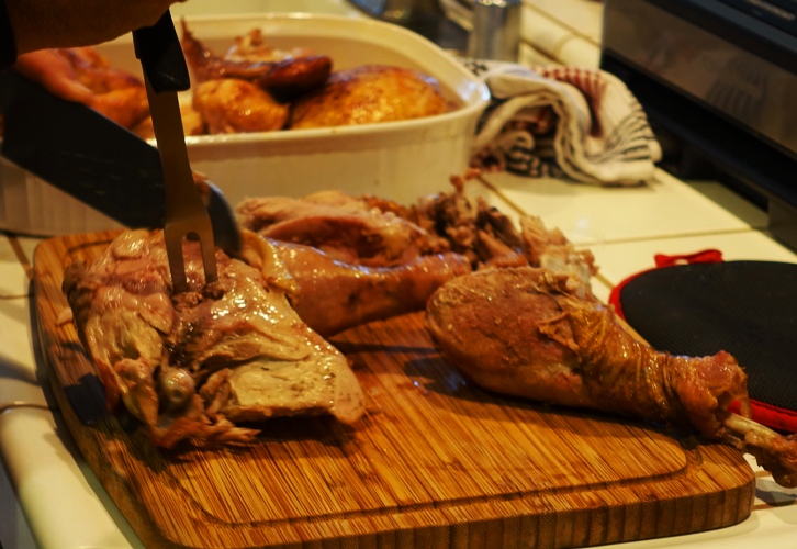Meanwhile Kevin is carving the turkey. I am actually helping out a bit and not just taking pictures. I held the platter for him 🙂