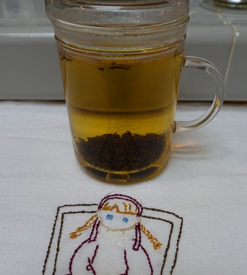 Here I have added the boiling water and the tea is starting to infuse. This tea has a short infusion time of only two minutes.