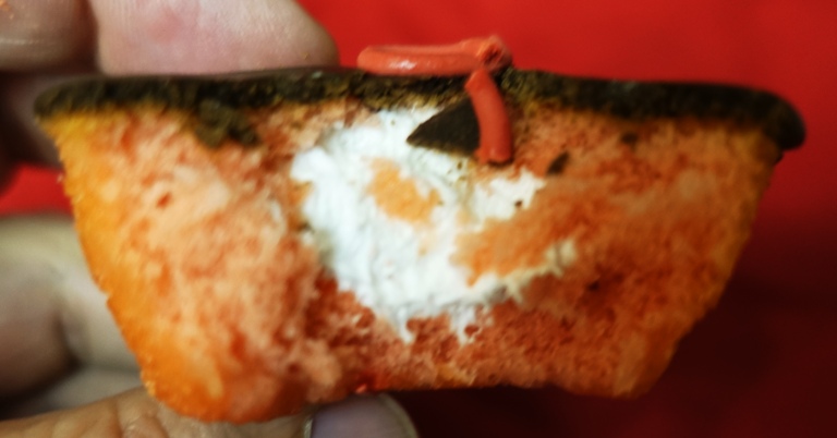 I took a big bite and it definitely tasted good. The cake is denser than most of the Hostess CupCakes and also a bit smaller. They must make it a bit smaller to keep the calories the same. There is definitely a nice strawberry flavor to the cake but I would rather have a less dense cake.