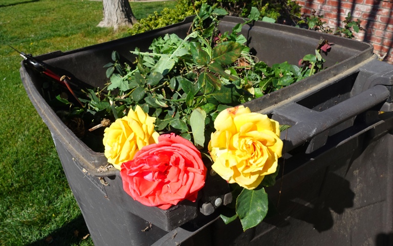 Here you can see that I am saving some of the rose blooms. It was so hard to just throw them in the yard waste container.