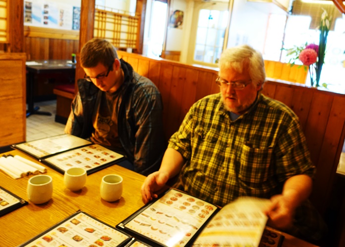 Here we are looking through the menus while enjoying some tea. They have an extensive menu of both Korean and Sushi dishes.