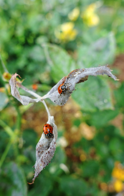 Tonight I released the rest of the ladybugs that I had bought. It looks like the first group has established itself pretty good and has been hard at work. I can already see a difference in the number of aphids in some areas.