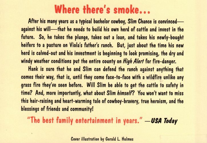 In this story Hank the Cowdog helps Slim Chance as he tries to save his herd of cattle. The story begins with Slim taking out a loan to buy cattle. Along with his girlfriend Viola they pasture the cattle on her father’s ranch. All is going great until the wildfire hits.