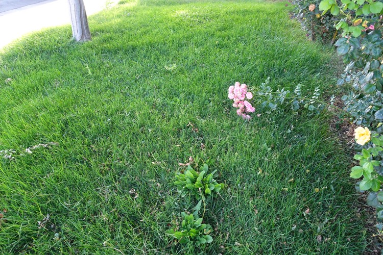 Here you can see my ragged lawn, including some roses that were laying over onto the ground.