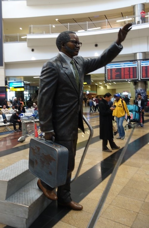 The first thing I saw after exiting from baggage claim was a statue of Oliver Tambo. The Johannesburg airport is the O. R. Tambo International Airport. Oliver Tambo was a teacher, lawyer and politician.