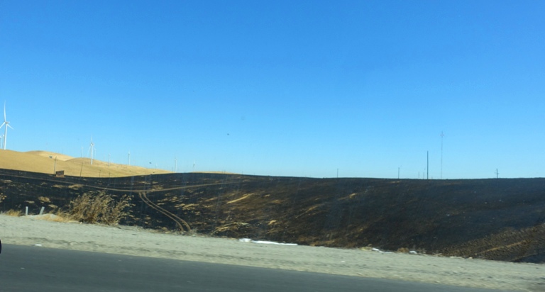 As I headed up the Altamont on my morning commute I could see the blackened patches and could just imagine what it had been like yesterday. Judging by the burn patterns the fire most likely started just off the eastbound lanes as they started to descend the Altamont. I wonder if they will be able to determine a cause and if they will report it, but my gut instinct is that someone threw something that was lit out of their window. It has been so hot and dry that the fire would have rapidly spread, especially with the high winds yesterday. The fire also jumped across two four lane stretches of highway which should have acted as firebreaks.