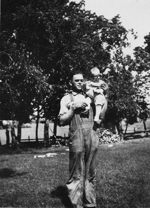 I had always thought that this was just a nice picture of my great great uncle Ray Cochran in overalls holding my Grandma. I focused more on Ray as I knew what Grandma looked like.