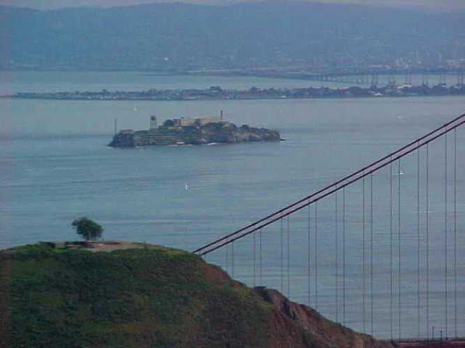 Here is a less popular view of Alcatraz. Most pictures you see are taken from the wharf area of San Francisco. This one is taken from the Marin Headlands. In the far distance you see the old Bay Bridge which has since been replaced.