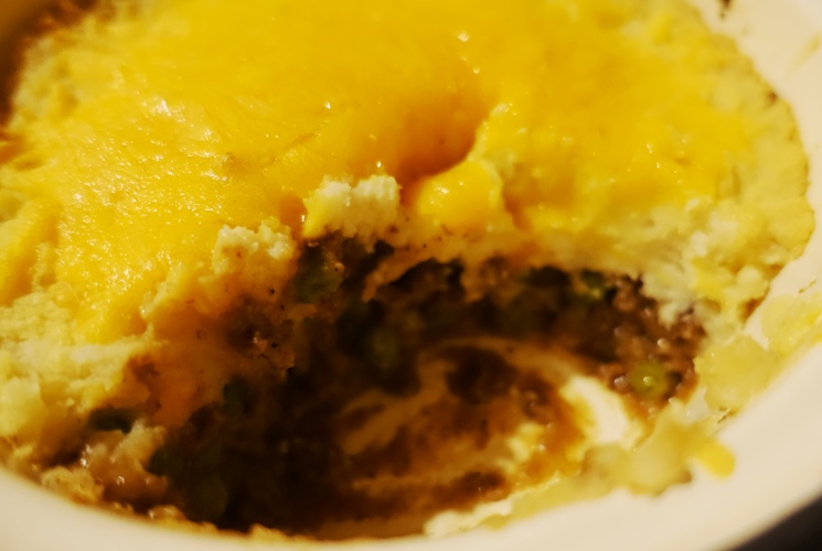 Here is the finished cottage pie all ready to be dished up. It smelled really good and I was ready for some comfort food.