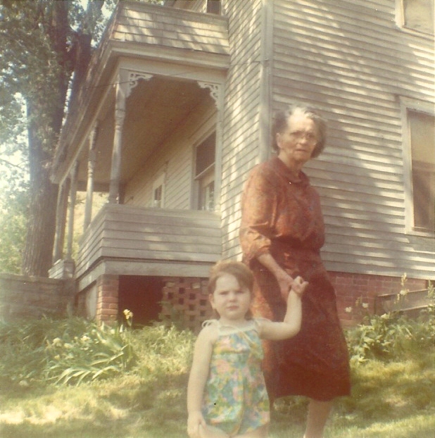 I will start with the oldest picture. Here is Lori with our Great-Grandmother Lottie Van Duzor. We called her Grandma Van. They are at the Bluffdale house where my grandparents lived just outside of Hamburg, Iowa.