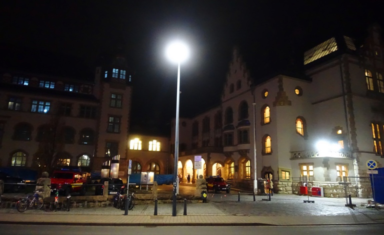 I thought about digging into my archive and finding a good picture of the outside of the Volkshaus, but decided that this picture that I took better conveyed what it was like that night.